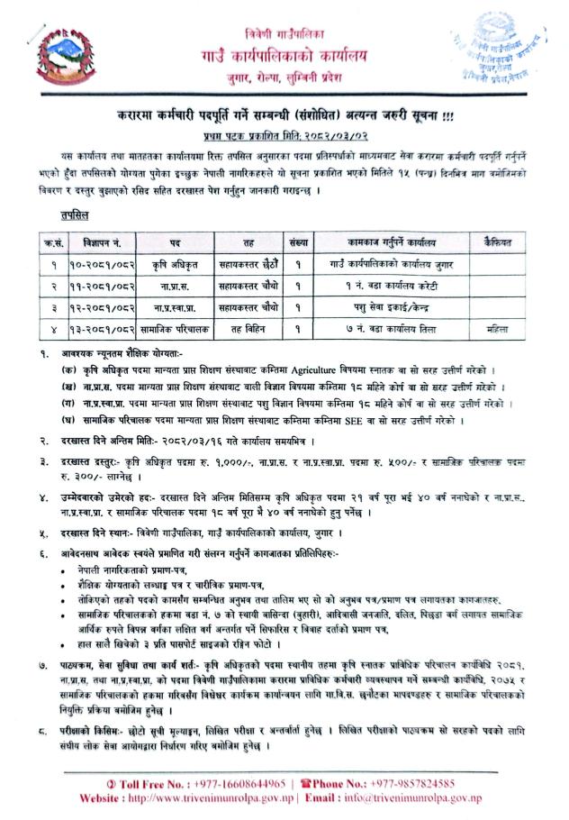 करारमा कर्मचारी पदपूर्ति गर्ने सम्बन्धी अत्यन्त जरुरी सूचना