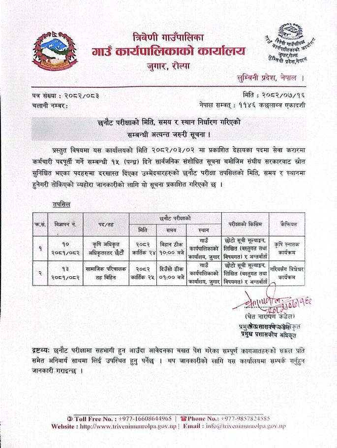 » छनोट परिक्षाको मिति, समय र स्थान निर्धारण गरिएको सम्बन्धी सूचना