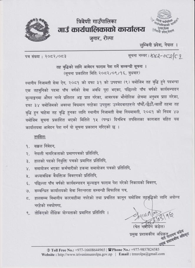 तह वृद्धिको लागि आवेदन फाराम पेश गर्ने सम्बन्धी सूचना !