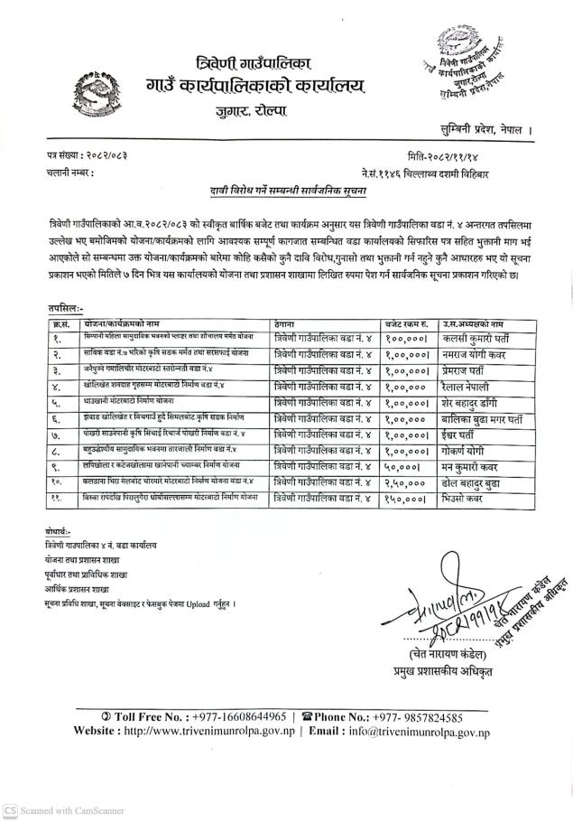 » दावी विरोध गर्ने सम्बन्धी सार्वजनिक सूचना !