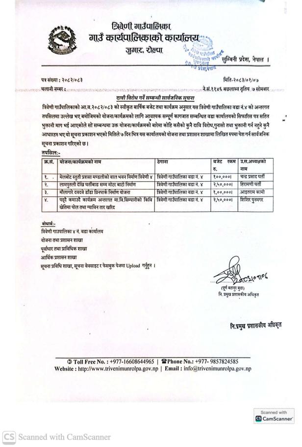 दावी विरोध गर्ने सम्बन्धी सार्वजनिक सूचना