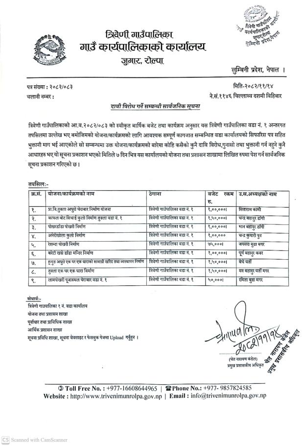 दावी विरोध गर्ने सम्बन्धी सार्वजनिक सूचना