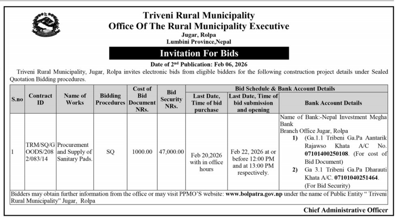 सार्वजनिक खरिद/बोलपत्र सूचना