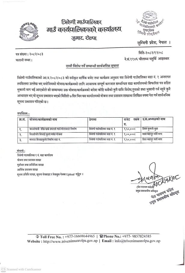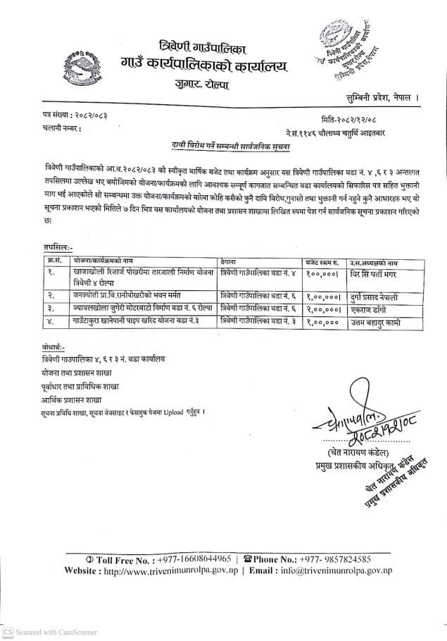 दावी विरोध गर्ने सम्बन्धी सार्वजनिक सूचना !!