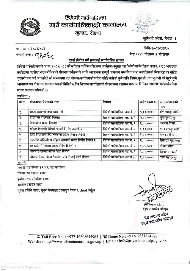 » दावी विरोध गर्ने सम्बन्धी सार्वजनिक सूचना