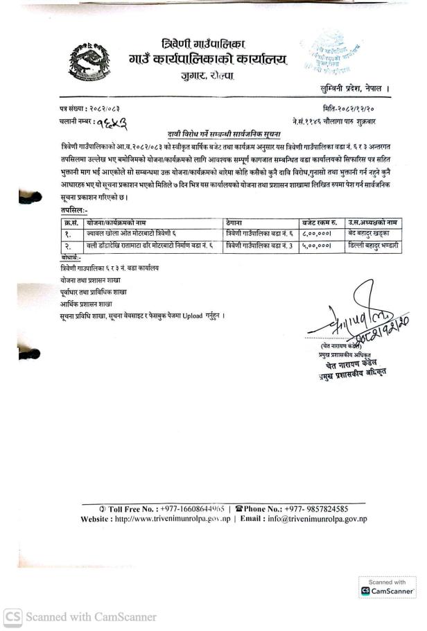 दावी विरोध गर्ने सम्बन्धी सार्वजनिक सूचना
