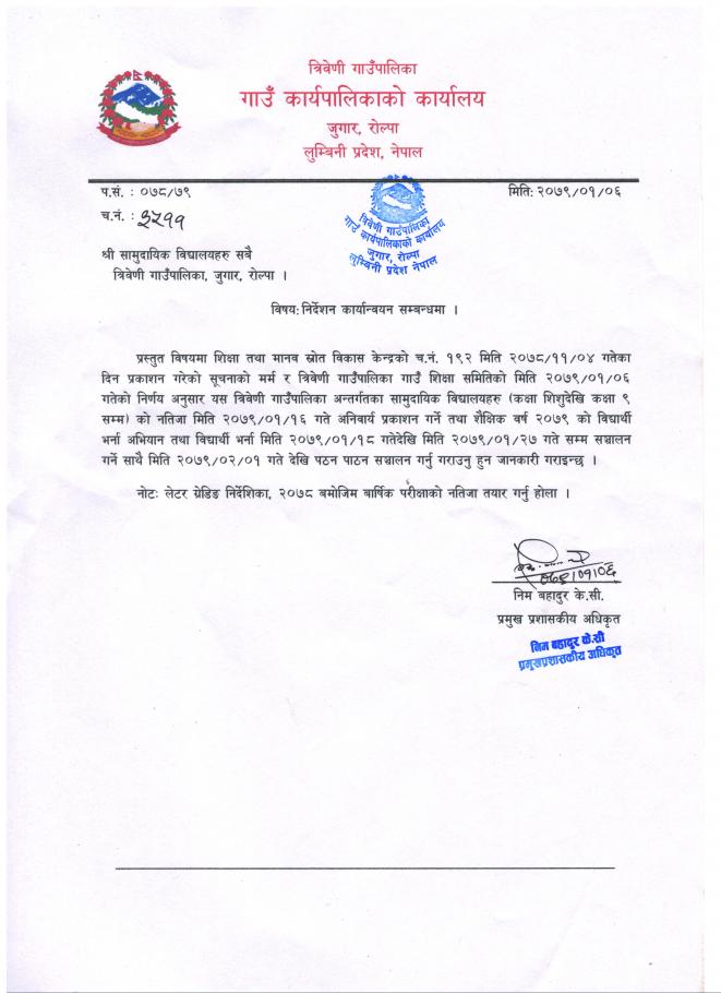 निर्देशन कार्यान्वयन सम्बन्धमा (श्री सामुदायिक विद्यालय सबै)