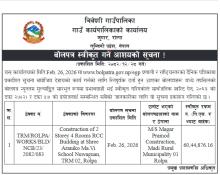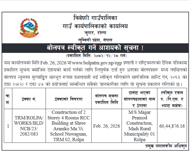 बोलपत्र स्वीकृत गर्ने आशयको सूचना !