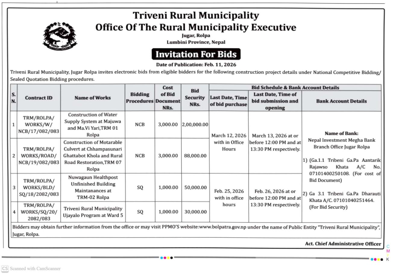 सार्वजनिक खरिद/बोलपत्र सूचना