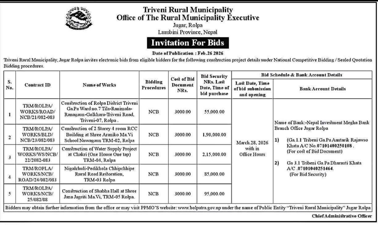 सार्वजनिक खरिद/बोलपत्र सूचना